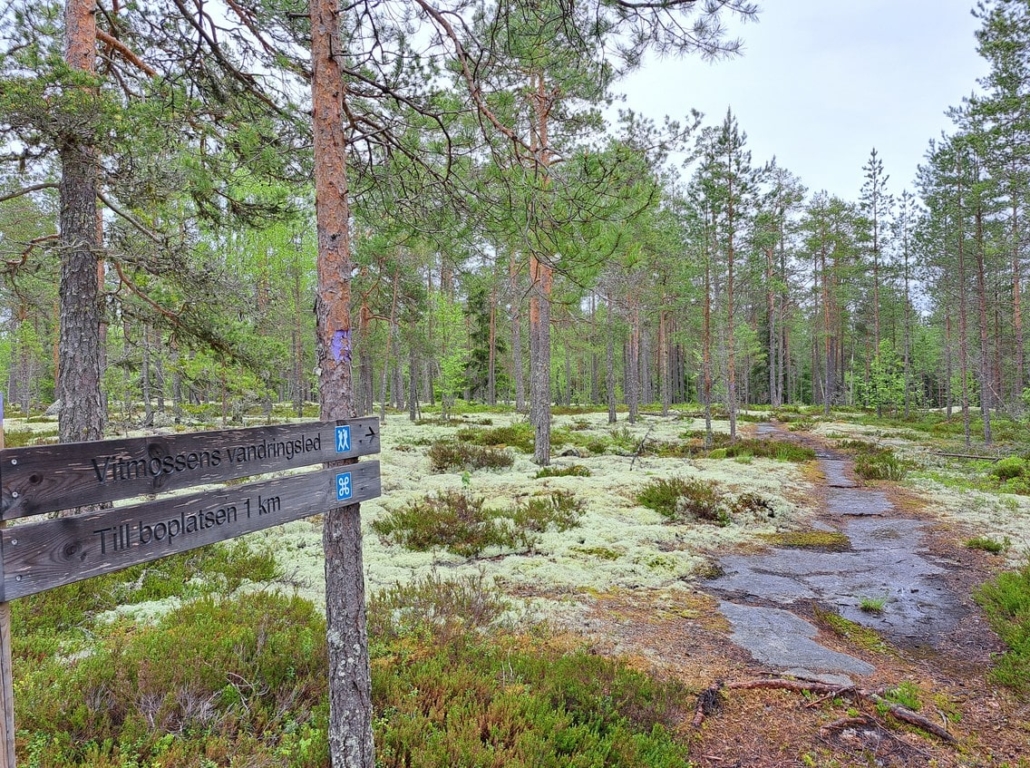 Sade alkoi sopivasti vasta sitten, kun olimme kotiutuneet iltapäivällä ja oli aika viettää hieman siestaa. Sateen lakattua lähdimme vielä iltaseitsemältä tutkimaan läheistä Vitmossenia. Kukkusintieltä on opaste reitille ja tien viereen mahtuu pari autoa. Majapaikasta oli tähän muutaman kilometrin automatka.