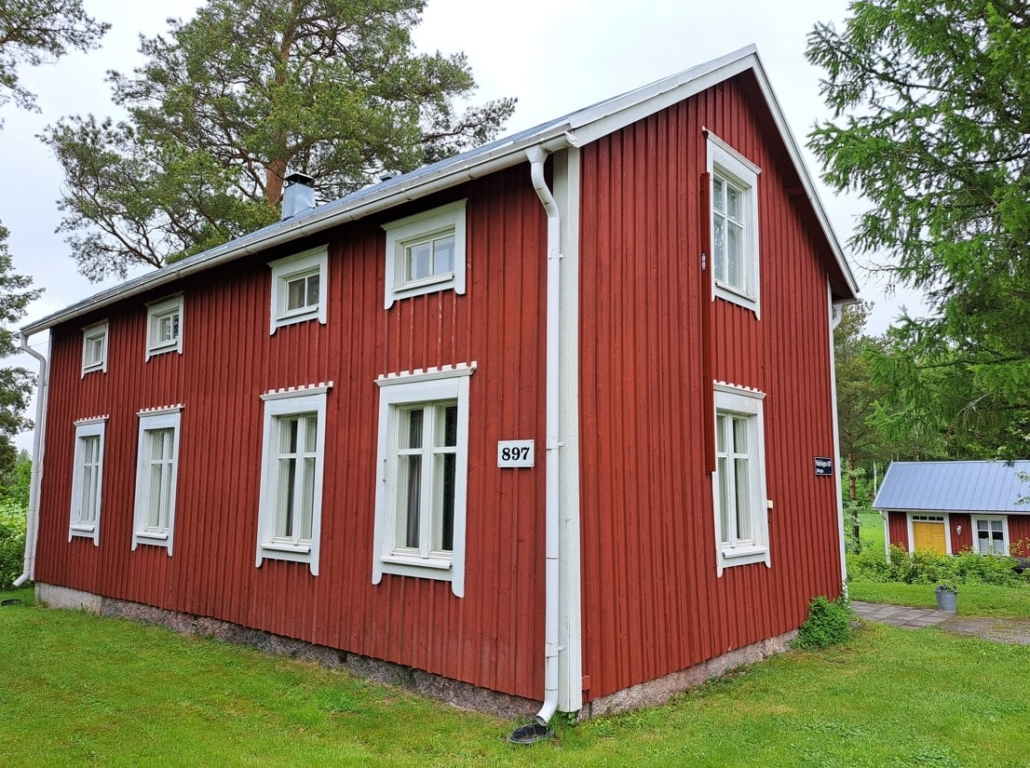 Tukikohtamme osoittautui noin sata vuotta vanhaksi, erinomaisella maulla kunnostetuksi ja sisustetuksi pohjalaistaloksi, jonka alakerrassa on tilava keittiö ja ruokailuhuone, iso kylpyhuone sekä yhden hengen makuuhuone, yläkerrassa kaksi kahden hengen makuuhuonetta. Pihapiiristä löytyi upouusi sauna, jota sai käyttää aina kun mieli teki.