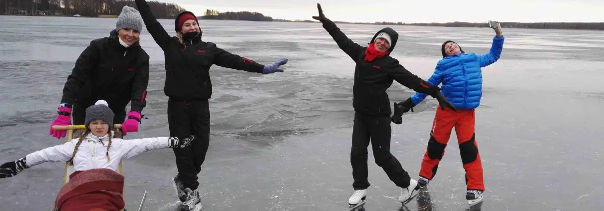 Luistelun riemua! Järven jää on niin tasainen, että siellä pystyi mainiosti luistelemaan hokkareilla ja jopa kaunoluistimilla. Kuva: Hanna Pere, vuosi 2018