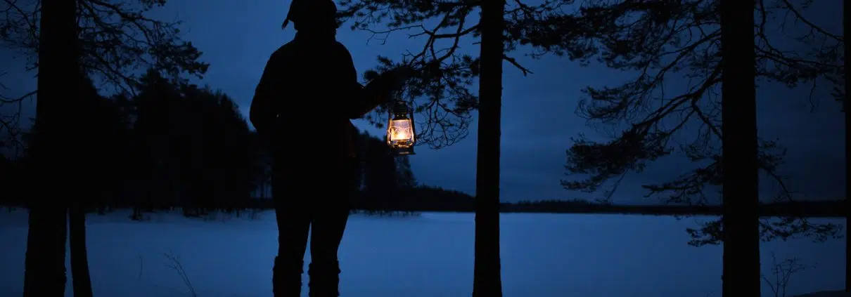 Hiihdimme öljylyhdyn valossa takaisin tuvalle, missä oli ihanan lämmintä. Lisäsimme kaminaan tulta ja kömmimme makuupusseihimme. Ulkona oleminen, liekkien välke kaminassa takasivat, että väsymys iski. Yöllä pakkanen laski lähes 25 asteeseen, mutta tuvassa siitä ei ollut tietoakaan.